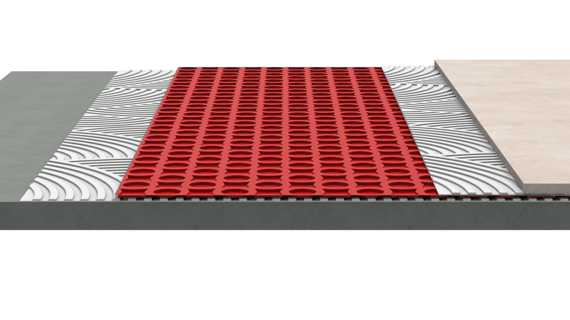 G-FLEX es una lámina desolidarizante impermeable anti-fractura que está formada por una membrana de politileno unida a una lámina de geotextil, dejando entre ellas nódulos de aire libre en forma de circunferencias. Gracias a esto, se mejora el resultado del revestimiento de baldosas cerámicas y piedras naturales de exterior e interior, destacando la eficacia al instalarse sobre soportes críticos;fisurados, con mucho movimiento o con posibles tensiones de vapor por humedad residual.