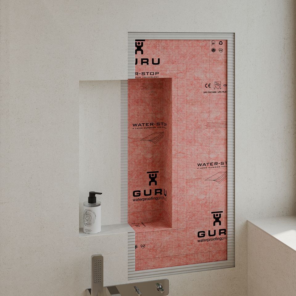 El W-S Niche es un nicho técnico de la marca GURU diseñado para ser revestido con cerámica o porcelánico, permitiendo una integración total en duchas de obra y baños contemporáneos.